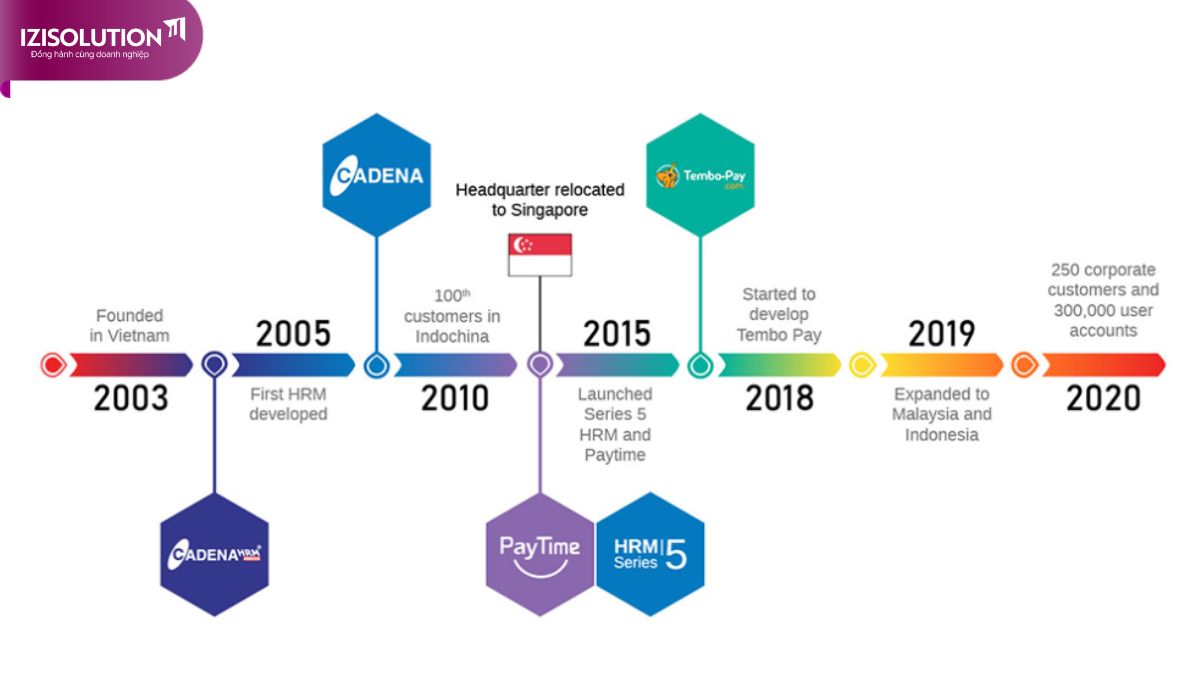 Nhận ra tiềm năng phát triển tại Việt Nam vào năm 2003, Cadena đã thiết lập trụ sở chính tại TP Hồ Chí Minh, mở rộng thêm văn phòng tại Hà Nội. Với lịch sử phát triển dài hạn và kinh nghiệm đáng kể, Cadena đã xây dựng một hệ thống và nền tảng phần mềm hiện đại để giải quyết các thách thức trong quản lý nhân sự một cách hiệu quả.